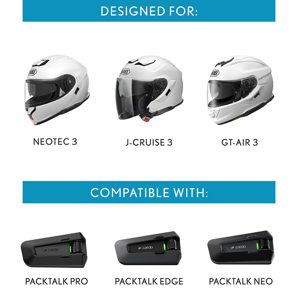 The Cardo adapter for Generation 3 Shoei helmets simplifies the process of securing your Packtalk PRO, EDGE or NEO onto Shoei Neotec 3, Shoei GT-AIR 3, and Shoei J-Cruise 3 helmets using adhesive tape and Shoei's pre-engineered mounting area. Simply remove the adapter from its packaging and securely attach it to the designated location using the adhesive tape provided.