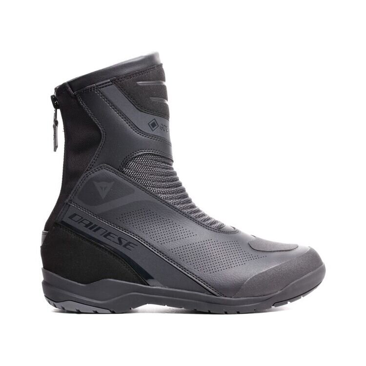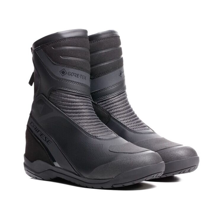 The Dainese Blackwing GTX Boots are a premium choice for touring and commuting riders who demand waterproof protection, comfort, and safety in every condition. Built with a Gore-Tex ePE waterproof and breathable membrane, these boots maintain optimal climate control while keeping your feet dry. The combination of abrasion-resistant D-Stone fabric, perforated microfiber, and a Groundtrax sole ensures durability, breathability, and reliable grip. With an Ortholite footbed, flexible joints for walking comfort, and reinforced protection throughout, the Blackwing GTX Boots deliver performance, versatility, and touring comfort in one sophisticated package.
