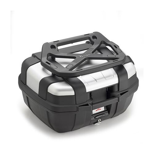 Luggage rack for large Givi top cases. Mounts using the included studs and nuts and will require minor drilling of the top case using the supplied paper template.