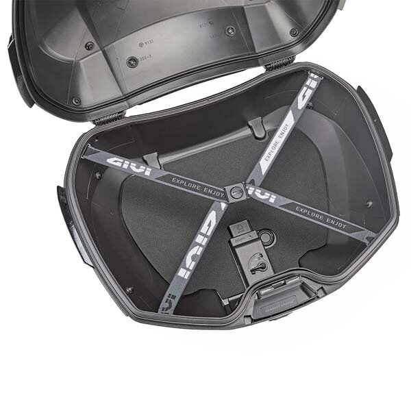 The Givi V49N Air Top Case is engineered to enhance both performance and style with its advanced aerodynamic design. Featuring Givi’s patented WINGFLOW system — tested in a wind tunnel by the Givi R&D team — the V49N Air minimizes vibration, reduces wind noise, and improves overall stability by optimizing airflow around the case. With sleek silver-painted aerodynamic wings on each side, it delivers both function and a refined aesthetic for sport-touring and adventure riders alike.