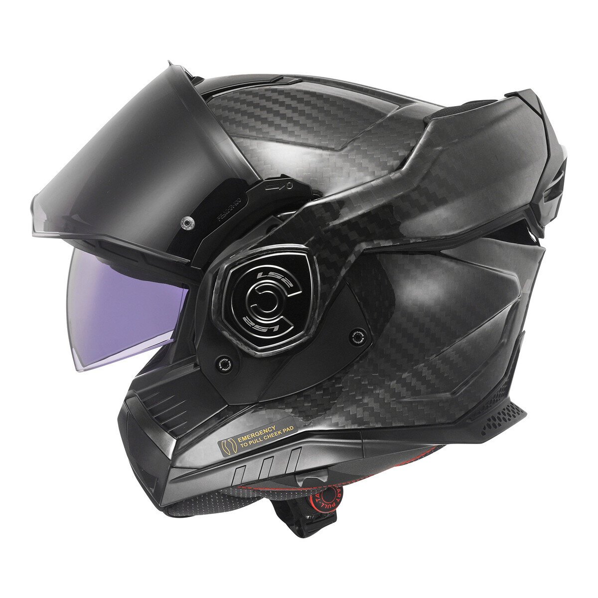 The most advanced convertible helmet on the market. Made of 100% carbon fibre, including its 180º rotating chin bar that offers maximum lightness and safety. Perfect for any type of riding and for all weather conditions. Anti-scratch visor prepared for the anti-fog system, Pinlock Max Vision, and drop-down sun visor.