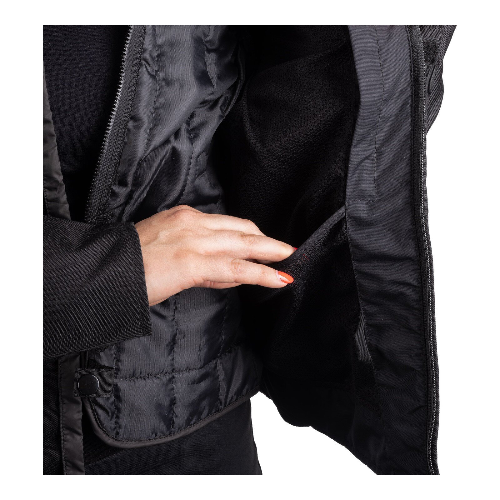 Quilted chest and back panels provide targeted wind protection, added comfort and a modern look, while the clean lines complement the female form. The HD-Poly construction delivers a durable outer shell with excellent structural integrity, exceeding CE Class AA requirements.