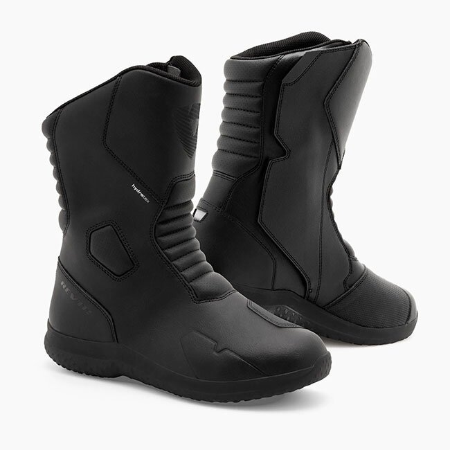 Waterproof touring boots for comfortable adventures in all-weather conditions, meet the Flux H2O motorcycle boots. They give riders the peace of mind that your feet will be comfortable, dry, and armored during your next tour in any type of weather. They are fully waterproof thanks to their breathable hydratex membrane. Protection at the ankle, heel, and toe keep your feet shielded, while the use of accordion stretch panels at the front and back provide extra freedom of movement while riding or walking. Grip on any surface is made possible thanks to Revit's in-house developed and durable rubber sole. Inside the boot, the OrthoLite® insole provides all day comfort on and off the bike. Additionally, the zipper and a hook-and-loop closure flap that runs alongside the Flux H2O motorcycle boots allow you to easily slip into them or take them off at the beginning or end of your day. Have no fear for adverse weather conditions during your next touring adventure because the Flux H2O motorcycle boots have you covered in comfort and style.