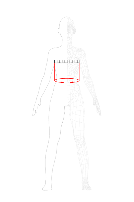 The circumference of the waist is measured by passing the tape measure on the waistline between the ribs and the pelvis just above the hip bones. Take the measurement when standing upright and breathing normally with the abdomen relaxed.